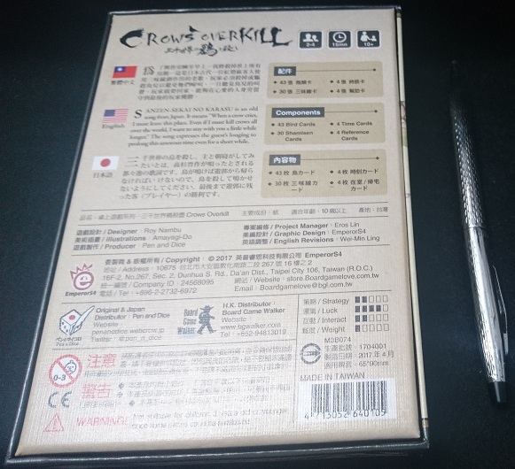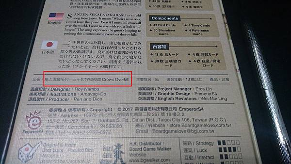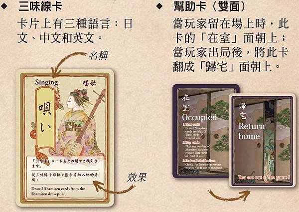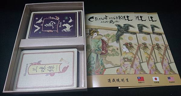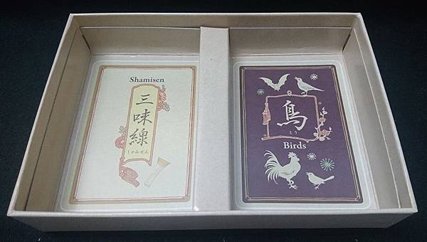 遊戲盒內襯有畫三味線跟鳥的牌背