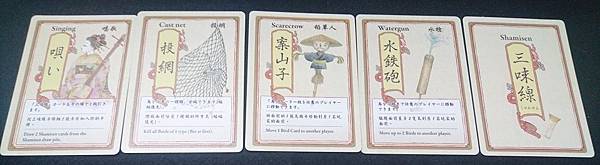 使用過的三味線卡跟死掉的鳥類卡各自丟棄牌堆