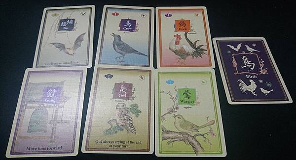 3.鳥類卡挑掉鐘聲卡,洗牌每個玩家發3張攤開在面前