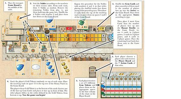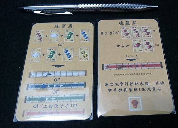 自己面前1張寶石卡跟圖板上1張相同類型寶石卡交換
