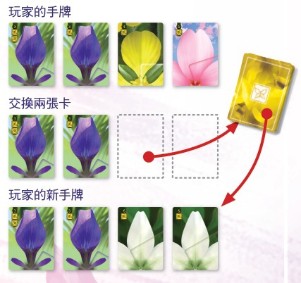 玩家從自己牌庫抽牌或攤開的野生花瓣區補牌