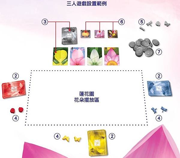 紅色玩家獲得控制權,藍色玩家受下花瓣(7張)