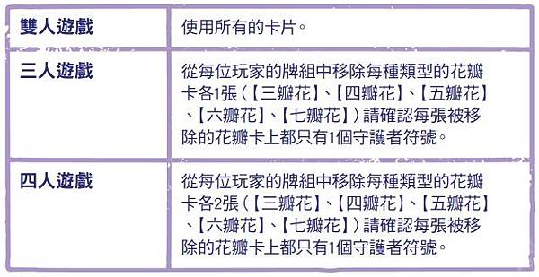 每個玩家的三四五六七瓣花牌分別是5,6,7,7,6張