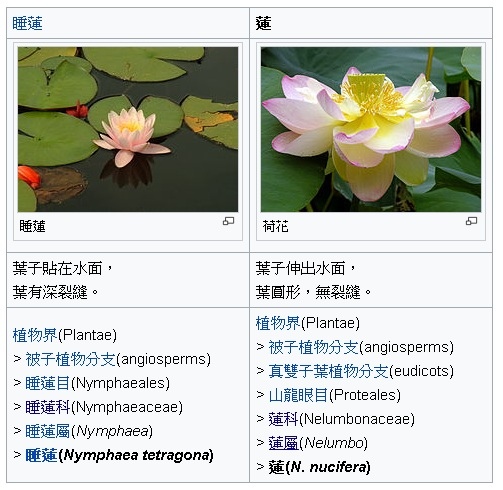 蓮花(Lotus)跟睡蓮(Water lily)很容易被搞混