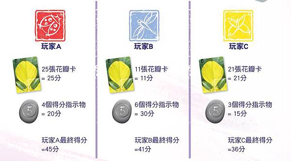 然後,最後放花瓣的人把整朵花的花瓣收下作為得分(每張1分)
