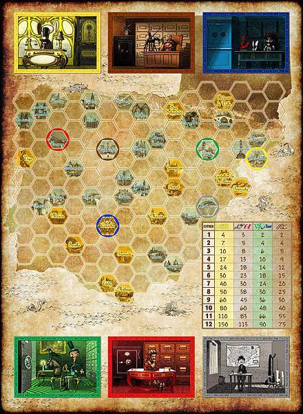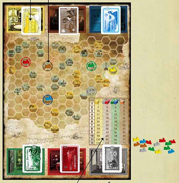 2.在各公司的起始位置各自放1個鐵軌(火車)