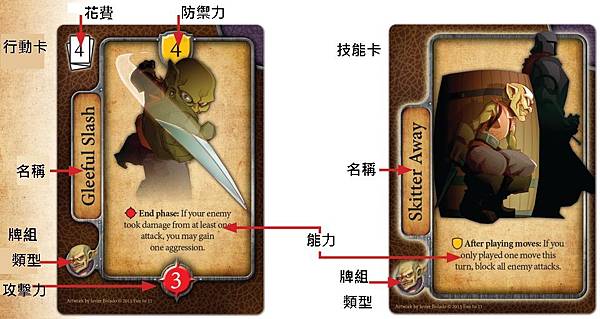 回合分為行動力,抽牌,打牌,防守,結束階段