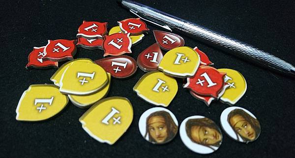 攻擊+1,防禦+1,傷害+1的指示物