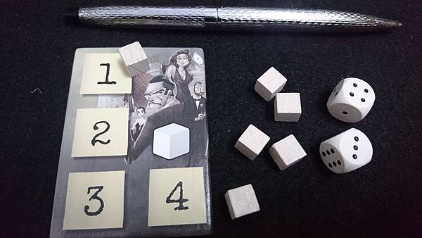 4.白色方塊跟2顆骰子放一旁備用
