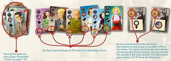 遊戲結束手牌+棄牌每個符號+1分(起始人物不算分喔)