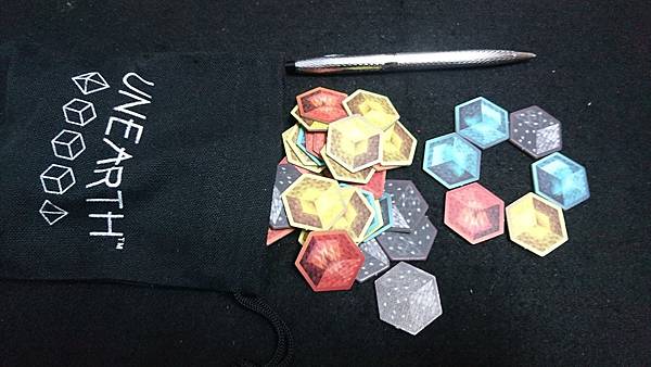 7.按照遺跡卡右下的數字,從袋子抽取石頭放到遺跡卡上