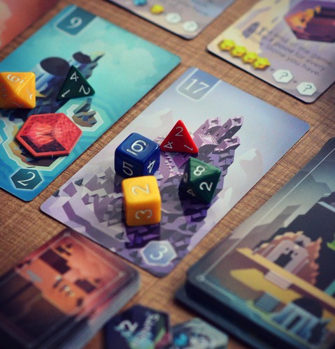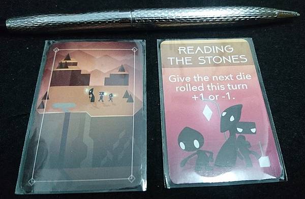 每次玩家擲出1/2/3就可以從選取的遺跡卡拿1石頭
