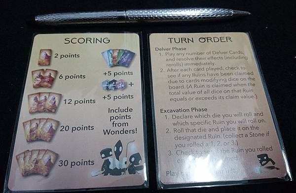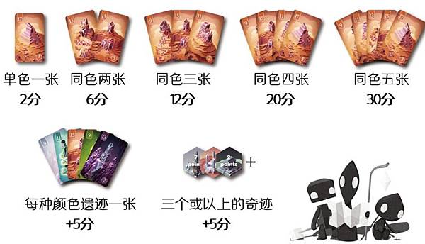 玩家翻開自己獲得的遺跡卡並結算分數(見下圖)