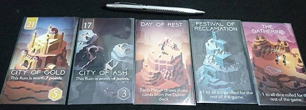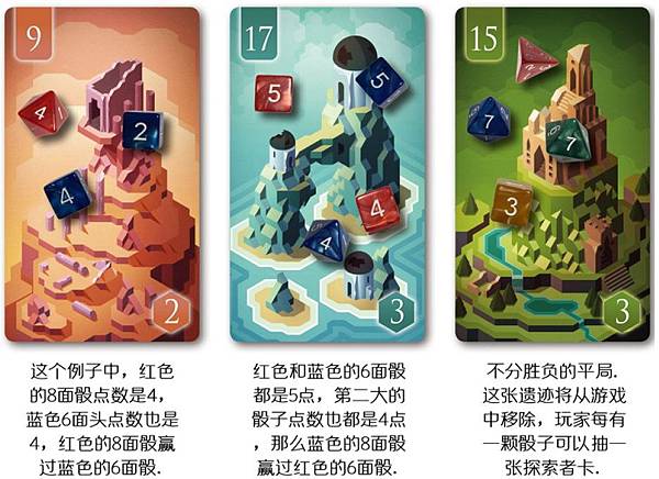 沒獲得遺跡卡的玩家在該遺跡上每顆骰子抽1張探勘卡