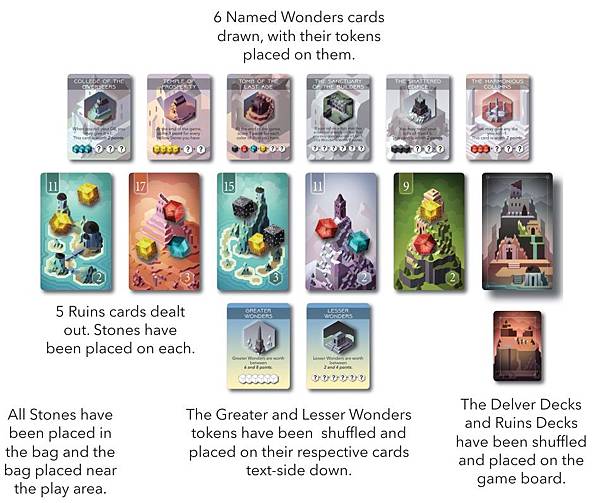 3.遺跡卡洗牌成牌庫,每個玩家抽1張