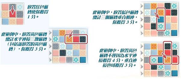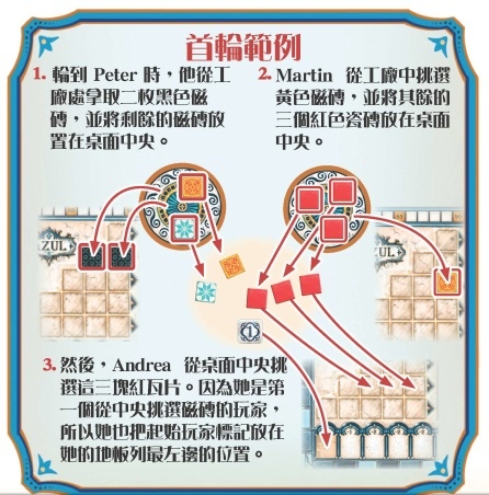 玩家一直輪流拿取磁磚直到全部磁磚都被拿完