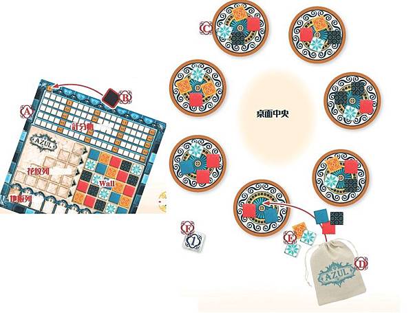 5.每個工廠板塊從袋中抽4個磁磚放上去
