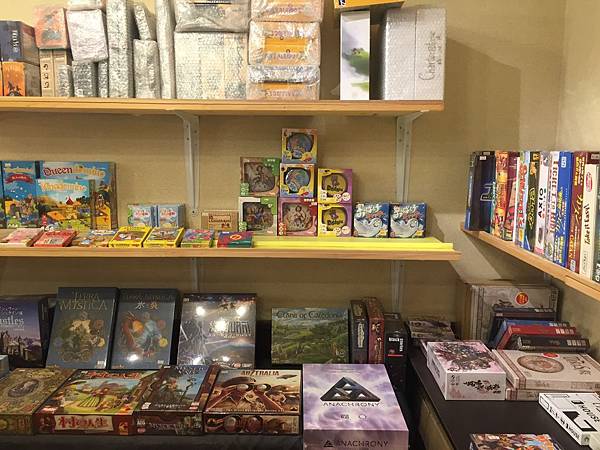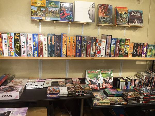 一進門就會看到幾個賣桌遊的架子,一堆英文版跟日文版的遊戲。