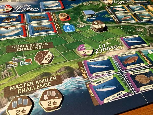 玩家參加釣魚大賽比誰釣起來的魚大隻,所有這是個運氣吃重的遊戲,畢竟魚要吊起來才知道多重嘛,所以遊戲中會有很多翻開牌才知道的狀況。這就是個運GAME,不要太在意。