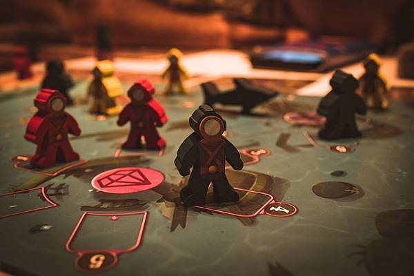 遊戲的另一個重點是踢人跟隔壁可以一起撈寶藏,所以擺放潛水夫打撈時都希望放在自己其他潛水夫旁邊,就可以多拿1個寶藏嘛,也很希望別人能把我的潛水夫踢到海灘上,可以免費撿一次貝殼欸!但會盡量避免這些事情發生在其他玩家身上,所以遊戲很大部分的思考跟糾結都在於不想爽到別人,完全就凍酸鬼的天人交戰XD,其實不在乎爽到別人的話...這遊戲真的就沒什麼需要思考的了。