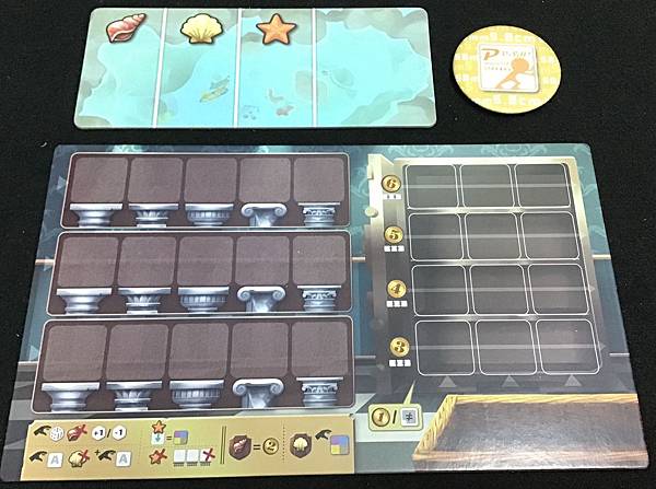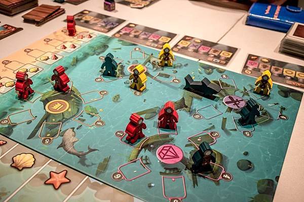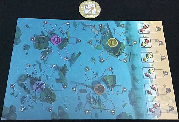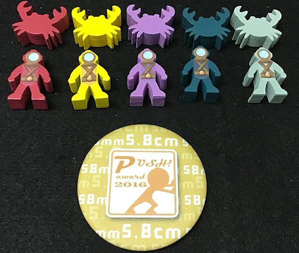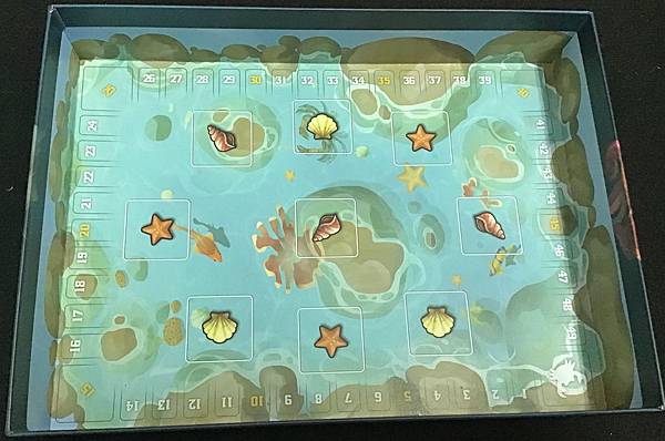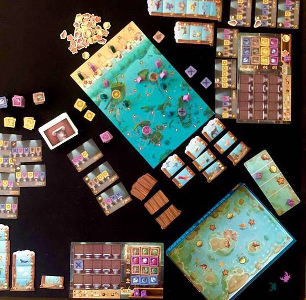 遊戲最令人印象深刻的當然是美術跟配件,尤其是潛水夫跟螃蟹很漂亮,雖然那個螃蟹超級沒用...,把它當作標示玩家顏色的配件就好,我還沒看過有人真的拿螃蟹來跑分數軌計分的,其實就連分數軌的存在都很多餘就是了XD。