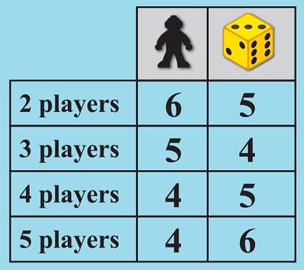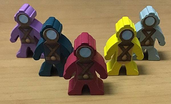 E.每個玩家拿1片個人圖板+螃蟹+潛水夫,潛水夫數量見下表。