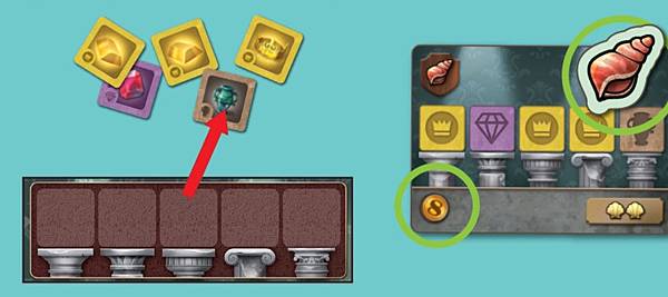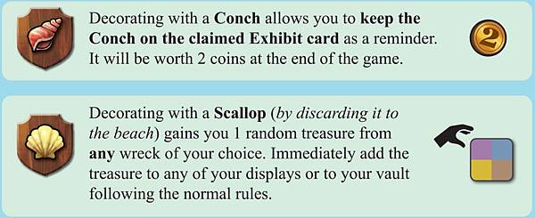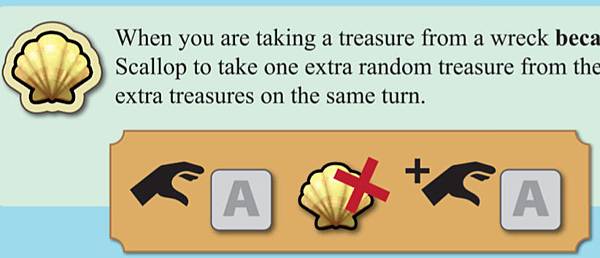 當你放著潛水夫獲得寶藏時可以棄掉扇貝多拿一片同色的寶藏,可以棄掉多個扇貝多拿幾片寶藏。