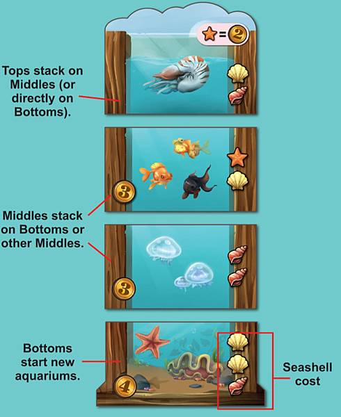 玩家要買幾個水族箱都行,但每個水族箱都得要從底部先購買再一層層疊上去,中層疊幾個都無所謂,但頂部放上去後這個水族箱就不能再增加任何東西了!