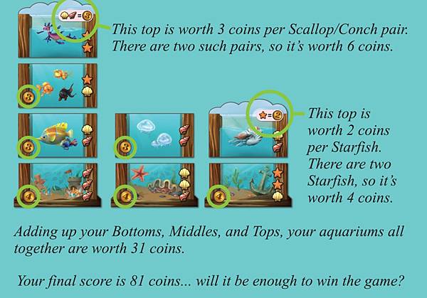 水族箱分數就計算所有水族箱左下的分數跟頂層的加分條件。