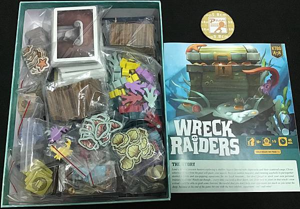 這次玩的遊戲跟《深海尋寶》一樣有個很亮眼的外觀,我當時看到外盒就產生了興趣,雖然稍微看了一下覺得有點新手向,但看到潛水夫跟螃蟹米寶還是決定給他買下去了,跟之前看到大河記的火雞就買了一樣XD,反正美術夠漂亮要脫手應該也不難。