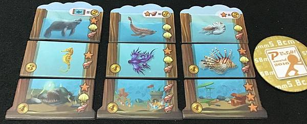 只要類型跟數量符合就可以拿取展覽卡,若類型+數量+順序都完全符合還可以多獲得展覽卡右下的獎勵(獲得水族箱或貝殼)。